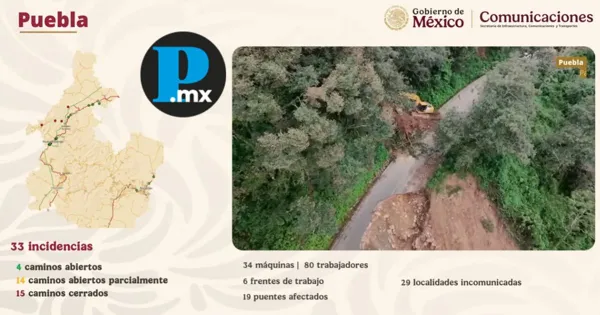 Uno de los municipios con más localidades incomunicadas tras las lluvias e inundaciones que afectaron la Sierra Norte es Pahuatlán, donde el gobierno federal ha iniciado maniobras de remoción de escombros y limpieza de caminos con maquinaria especializada para acelerar su reapertura en un máximo de tres días. Este día llegarán 20 máquinas especializadas a Pahuatlán, que se suman a la decena que arribó desde el día de ayer, por lo que las labores de la Federación en la zona terminarán en dos o tres días, informó el Comité Nacional de Emergencia. Te puede interesar: Crisis en la Sierra Norte revive escándalos de maltrato en Animalia Durante la conferencia matutina de la presidenta Claudia Sheinbaum Pardo, se detalló que, hasta el momento, se han atendido 18 de las 33 incidencias por cierres de caminos reportadas en Puebla. De ellas, 14 vialidades ya fueron reabiertas parcialmente y cuatro en su totalidad, mientras que las restantes permanecen bloqueadas. En total, se contabilizan 29 localidades incomunicadas y 19 puentes afectados distribuidos en 23 municipios, aunque las labores de limpieza y evaluación continuarán durante los próximos días. A nivel nacional, Sheinbaum Pardo informó que aumentó a 66 el número de personas fallecidas tras registrarse un nuevo deceso en Hidalgo, además de 75 personas no localizadas. Por entidad, el recuento es el siguiente: en Veracruz se reportan 30 muertos y 18 desaparecidos; en Hidalgo, 21 fallecidos y 50 personas no localizadas; en Puebla, 14 muertos y 7 desaparecidos; mientras que Querétaro registra una víctima mortal y San Luis Potosí no reporta decesos. |