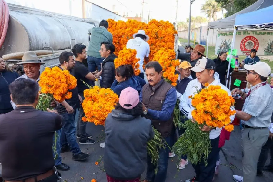 Los panteones de Jesús y La Magdalena en San Pedro Cholula se tiñeron de naranja este fin de semana, cuando cientos de familias acudieron a visitar a sus difuntos entre el aroma del cempasúchil y los altares improvisados sobre las tumbas. Como parte de las celebraciones por el Día de Muertos, personal del Ayuntamiento entregó de manera gratuita ramos de flores a los asistentes, un gesto que —más allá del simbolismo— ayudó a aliviar el gasto de las familias que cada año acuden a honrar a sus seres queridos. La jornada estuvo acompañada por un operativo especial de la Secretaría de Seguridad Ciudadana y Protección Civil, mientras que cuadrillas de Servicios Públicos realizaron trabajos previos de limpieza y mantenimiento en los cementerios municipales para garantizar condiciones seguras.