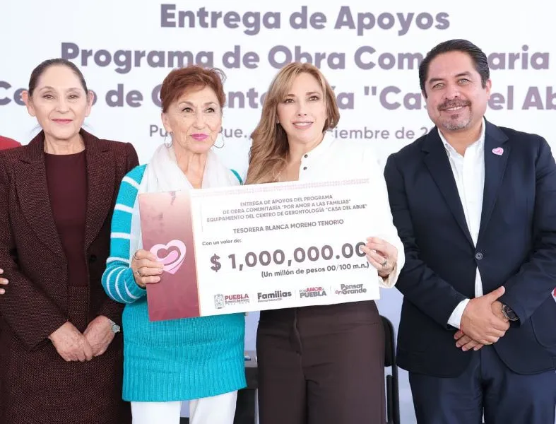 El Gobierno del Estado de Puebla reforzó la atención a personas adultas mayores con una inversión de 2 millones de pesos para modernizar y reequipar el Centro de Gerontología Casa del Abue, uno de los espacios más emblemáticos del SEDIF para el acompañamiento y cuidado de este sector. La presidenta del Patronato del SEDIF, Ceci Arellano, encabezó la entrega de dos cheques por un millón de pesos cada uno, recursos que permitirán renovar áreas como panadería, taller de cocina, espacios administrativos y servicios especializados como podología, fisiatría y equipo de audio. El director general del SEDIF, Juan Carlos Valdez Zayas, detalló que la red estatal de atención continuará expandiéndose con dos nuevas Casas del Abue en la capital poblana. La segunda sede —en Torres de Mayorazgo— registra un 85% de avance y será inaugurada este mes; mientras que la tercera iniciará construcción en diciembre de 2025 en Lomas de San Miguel, en un predio de 6 mil metros cuadrados.