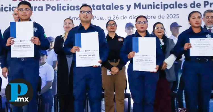 El gobierno del Estado de Puebla, a través de la Universidad de las Ciencias Policiales y de la Seguridad (UCIPS), graduó durante 2025 a 303 policías estatales y municipales de proximidad, con la visión de ampliar la presencia territorial, fortalecer la prevención del delito y mejorar la atención ciudadana. En la ceremonia de este viernes, realizada en Amozoc, se titularon 138 elementos —73 mujeres y 75 hombres— como parte de la estrategia para consolidar corporaciones profesionales, cercanas a la ciudadanía y con enfoque humanista del gobierno estatal que encabeza Alejandro Armenta Mier. Te puede interesar: Gobierno estatal rehabilita sanitarios del campo El Hoyo en colonia Riego Sur En representación del gobernador, la secretaria de Bienestar, Laura Artemisa García Chávez, destacó que la seguridad se construye con compromiso y respaldo real a quienes cuidan de las familias poblanas. Informó sobre la entrega de 11 mil 572 paquetes en especie para fortalecer y dignificar las viviendas de elementos policiales, como una acción alineada con la visión humanista de la presidenta Claudia Sheinbaum, a través del programa Por Amor a Puebla.
