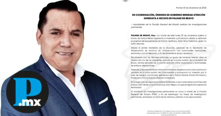 Una serie de hechos violentos ocurridos en dos juntas auxiliares del municipio de Palmar de Bravo encendió las alertas la noche del lunes 29 de diciembre, luego de que sujetos armados que se desplazaban en motocicletas atacaran inmuebles vinculados al exalcalde Adán Silva Valeriano, sin que se reportaran personas lesionadas. El primer incidente se registró en La Purísima de Bravo, donde un grupo de hombres intentó ingresar a una vivienda. La rápida reacción de vecinos y la presencia policial evitó que el intento de robo se consumara, de acuerdo con reportes preliminares. Sin embargo, minutos más tarde, presuntamente los mismos sujetos se trasladaron a Cuacnopalan, donde provocaron un incendio en una casa habitación relacionada con el exedil. El fuego alcanzó dos vehículos estacionados en el lugar: una camioneta Chevrolet pickup color verde y una Ford pickup color negro. Elementos de la Policía Estatal, Policía Municipal y personal de Protección Civil acudieron para sofocar el incendio y asegurar la zona, evitando que las llamas se extendieran a viviendas cercanas. En ambos puntos únicamente se reportaron daños materiales. Te puede interesar: Gobierno federal acompaña a familias tras accidente del Tren Interoceánico Autoridades estatales mantuvieron comunicación con el exalcalde tras los hechos, confirmando que no se encontraba en los inmuebles atacados y que no resultó lesionado. La Fiscalía General del Estado inició una carpeta de investigación para esclarecer lo ocurrido, determinar si los ataques están relacionados entre sí y establecer el móvil de los hechos, así como la identidad de los responsables. |