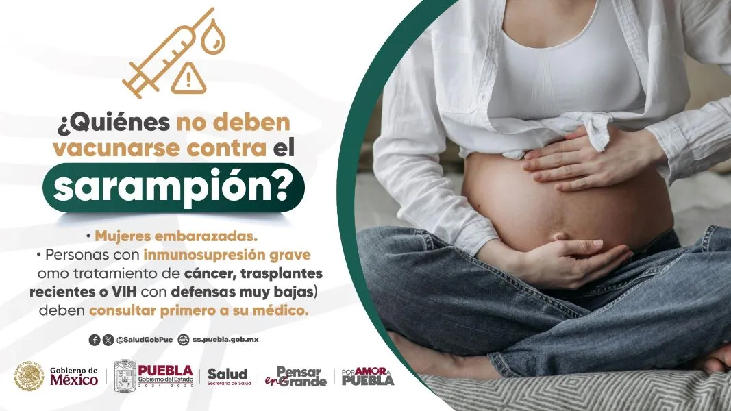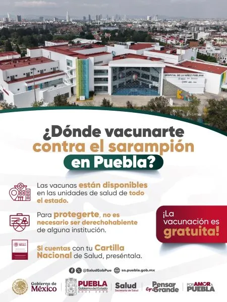 Derivado de que se confirmó el primer caso de sarampión en Puebla, el Gobierno del Estado, a través de la Secretaría de Salud, pidió a la población reforzar las medidas de prevención contra el virus, en especial mediante la vacunación. En un comunicado, informó que la vacuna SR o SRP está disponible de forma gratuita en todos los centros de salud del estado. Te puede interesar: Confirman sarampión en Puebla; esto es lo que debes saber para protegerte El esquema contempla una primera dosis a los 12 meses de edad y una segunda dosis cuatro semanas después. Además, señaló que cualquier persona menor de 49 años que no tenga antecedentes de vacunación o cuente con esquemas incompletos puede acudir a vacunarse. Asimismo, alertó que las personas que no deben aplicarse la vacuna son aquellas que están embarazadas, viven con VIH o reciben tratamientos por padecimientos crónico-degenerativos, ya que deben consultar previamente a su médico. ![]() La directora de Salud Pública y Vigilancia Epidemiológica, Crisbel Akaeena Domínguez Estrada, explicó que el sarampión es una enfermedad viral que afecta sobre todo a niñas, niños y personas que no cuentan con su esquema de vacunación completo. La funcionaria informó que se transmite a través de gotitas respiratorias, las cuales pueden permanecer en el aire hasta dos horas. ![]() En ese sentido, se recomienda el uso de cubrebocas en espacios cerrados o públicos, el lavado frecuente de manos y el estornudo de etiqueta (en el hueco del codo). En relación con el primer caso confirmado de sarampión en Puebla, correspondiente a una mujer de 30 años, la directora aclaró que se trata de un caso importado y que no existe transmisión comunitaria en la entidad hasta el momento.