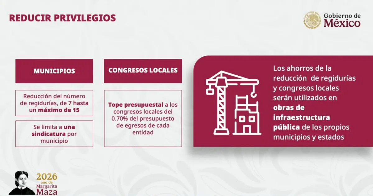 Te puede interesar: Congreso de Puebla, entre los menos costosos del país Durante la presentación del proyecto, la secretaria de Gobernación, Rosa Icela Rodríguez Velázquez, detalló que en el ámbito municipal se propone reducir el número de regidurías a un rango de entre 7 y 15 por Ayuntamiento, dependiendo de la población y características de cada demarcación, además de limitar a una sola sindicatura por municipio. En el caso de Puebla, que actualmente cuenta con 23 regidores, la medida implicaría la eliminación de ocho espacios en el cabildo. ![]() Para los congresos estatales, la iniciativa contempla un tope presupuestal equivalente al 0.70% del presupuesto de egresos de cada entidad. Los recursos que se ahorren por estos ajustes serían destinados a obras de infraestructura pública en municipios y estados. En cuanto a los organismos electorales, como el Instituto Nacional Electoral (INE), tribunales y órganos locales, se establece que consejeros, magistrados y altos funcionarios no podrán recibir salarios superiores al de la Presidencia de la República. La propuesta también incluye una reducción progresiva del gasto en el Senado de la República de hasta 15 por ciento, así como la eliminación de prestaciones como bonos, seguros de gastos médicos mayores e ingresos adicionales para funcionarios. ![]() Asimismo, se plantea que la elección del Poder Judicial se realice en 2027, y que la consulta de revocación de mandato tenga lugar el primer domingo de junio del tercer o cuarto año de gobierno, dependiendo de cuándo lo solicite la ciudadanía. En materia de fiscalización, se prevé que el INE pueda firmar convenios con la Secretaría de Hacienda y Crédito Público (SHCP) para revisar aportaciones a campañas cuando sea necesario, además de prohibir el uso de recursos ilícitos o de origen no comprobable en procesos electorales. |