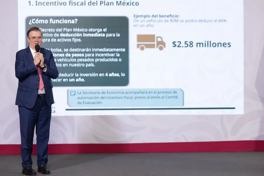 Te puede interesar: Claudia Sheinbaum inaugura Mundial Social con 700 mil participantes El secretario de Economía, Marcelo Ebrard Casaubon, puntualizó que el programa contiene cuatro puntos: incentivos fiscales del Plan México para que se pueda deducir de manera inmediata la compra de activos fijos y así reducir de cuatro a un año la deducción de los vehículos nuevos; además de invertir 2 mil mdp para estimular la compra de unidades fabricadas en el país. Por ello, para aplicar a los estímulos es necesario consultar los lineamientos del Decreto del Plan México, que ya son públicos; enviar una solicitud de autorización a la Unidad de Desarrollo Productivo de la Secretaría de Economía al correo dgipat1@economia.gob.mx, y esperar la autorización del Comité del Plan México.