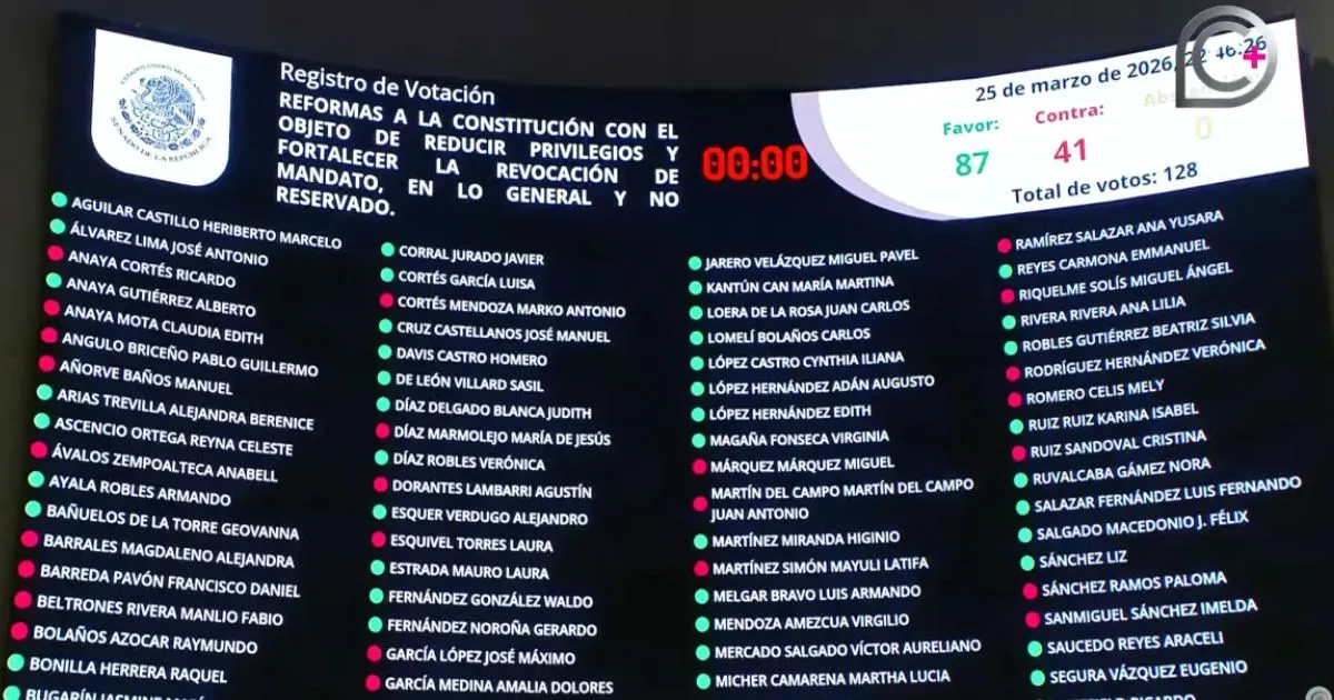 La presidenta de México, Claudia Sheinbaum Pardo, celebró la aprobación en el Congreso de la Unión de la disminución a las pensiones exorbitantes de exfuncionarios, así como el avance del Plan B de la Reforma Electoral, aunque lamentó que este último no haya sido validado en su totalidad. En su rueda de prensa matutina, consideró que, aunque se avalaron medidas clave para reducir privilegios en el servicio público, que era el objetivo principal de su propuesta, el hecho de que el Senado de la República haya dejado fuera los ajustes a la revocación de mandato "era malo para el país". La mandataria recordó que su propuesta no buscaba que se realizara el ejercicio en el 2027, sino que la ciudadanía tuviera la posibilidad de solicitar la consulta sobre el desempeño de la persona titular del Poder Ejecutivo antes del tercer año de gobierno. Te puede interesar: Sheinbaum y gasolinerxs acuerdan tope voluntario para frenar precio del diésel El Senado aprobó la noche del miércoles el llamado Plan B de Reforma Electoral, impulsado por la presidenta de México, con una única modificación respecto a la propuesta original relacionada con la revocación de mandato. La votación se llevó a cabo antes de las 23:00 horas, cuando el dictamen obtuvo mayoría calificada con 87 votos a favor y 41 en contra, superando el mínimo requerido de 86 de los 128 senadores, al tratarse de cambios constitucionales. Posteriormente, la discusión se prolongó hasta casi la medianoche para analizar las reservas presentadas, de las cuales solo fue aceptada la propuesta de la legisladora poblana Lizeth Sánchez García, del Partido del Trabajo (PT).