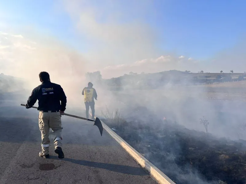 Incendio en Chalchicomula de Sesma / Cortesía También se atendió un incendio de pastizal sobre el derecho de vía en la carretera estatal Serdán–Santa María Techachalco, en el municipio de Chalchicomula de Sesma. El fuego afectaba la visibilidad de los conductores, por lo que brigadistas realizaron labores de enfriamiento con mochilas aspersoras y sofocación con batefuegos. Las autoridades mantienen el monitoreo de los puntos activos y continúan con labores coordinadas para evitar la propagación del fuego en la entidad.