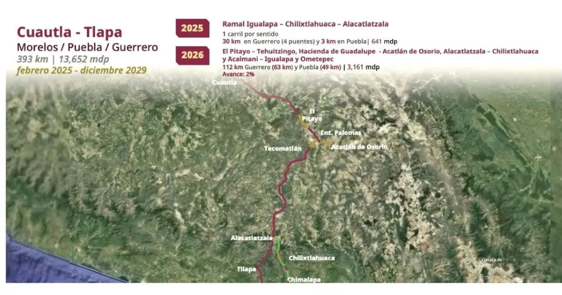 Indicó que las obras comenzarán en el mes de abril y contarán con una inversión total de 13 mil 780 millones de pesos. Añadió que, aunque tras las lluvias se atendió la emergencia con la habilitación de pasos provisionales, el objetivo es restablecer completamente las vialidades afectadas. En este mismo contexto, el funcionario reportó avances en el proyecto carretero Cuautla–Tlapa, el cual contempla intervenciones en municipios de Puebla como Tehuitzingo y Acatlán de Osorio.
