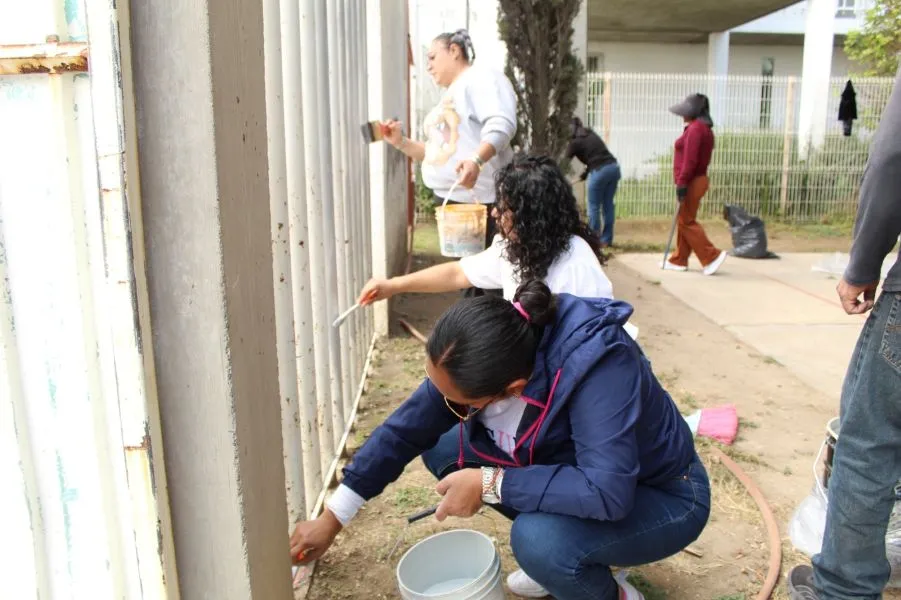 Autoridades municipales y estatales realizaron una jornada de faena comunitaria en la Casa del Abue, con el objetivo de mejorar espacios destinados a personas adultas mayores. Las actividades fueron encabezadas por la presidenta honoraria del DIF Municipal, Lupita Fernández, y personal del organismo, quienes llevaron a cabo trabajos de limpieza y mantenimiento. Durante la jornada se intervinieron áreas como la cancha de cachibol, donde se realizaron labores de barrido, pintura y retiro de maleza para mejorar las condiciones del espacio.