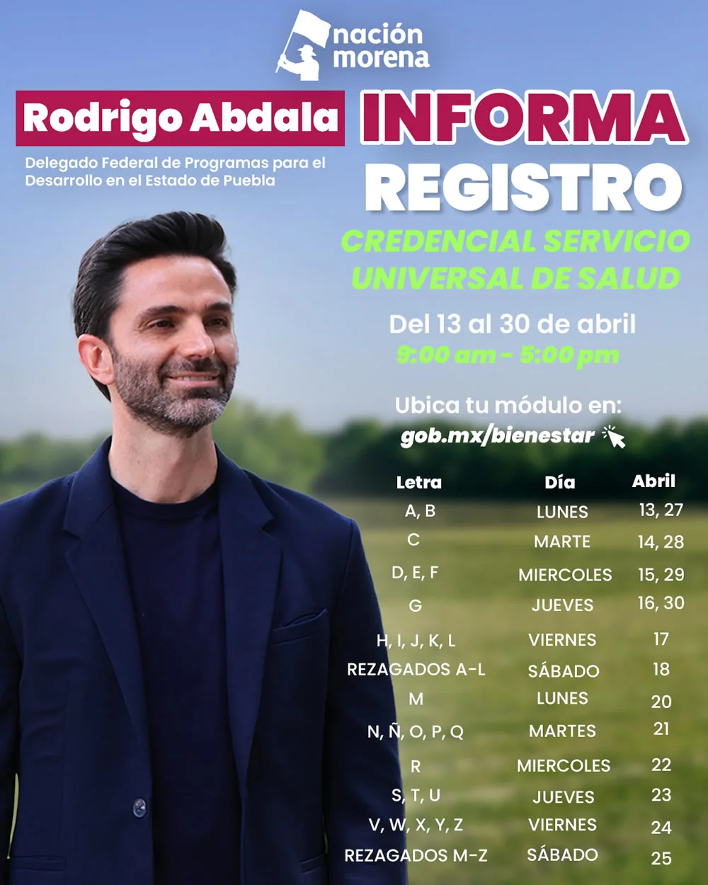 Además de difundir continuamente su imagen en páginas como Abdalovers, Nación Morena y esencia Puebla, donde se comparten videos en donde se promociona a Rodrigo Abdala en la entrega de programas del Bienestar. También se comparten supuestas encuestas en donde Rodrigo Abdala se posiciona dentro de los favoritos para competir por la alcaldía de Puebla.