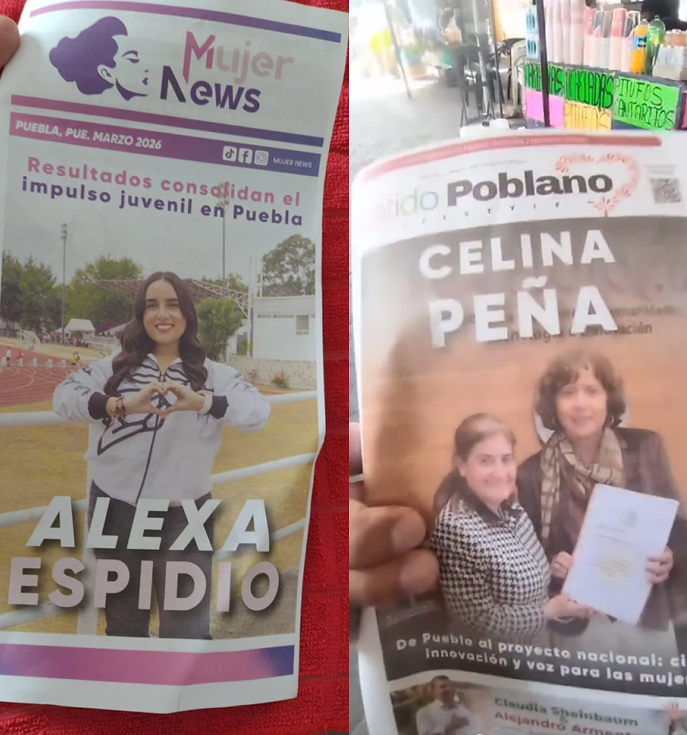 Panfletos en eventos públicosOtra modalidad detectada es la distribución de materiales impresos tipo panfleto o publicaciones periódicas. La subsecretaria de Juventud, Alexa Espidio Sánchez, ha sido vinculada con la difusión de una supuesta revista denominada Mujer News, mientras que la funcionaria federal Celina Peña Guzmán promueve su imagen a través de folletos bajo el nombre Latido Poblano. Ambos casos han sido señalados por utilizar formatos informativos como vehículos de posicionamiento personal.
