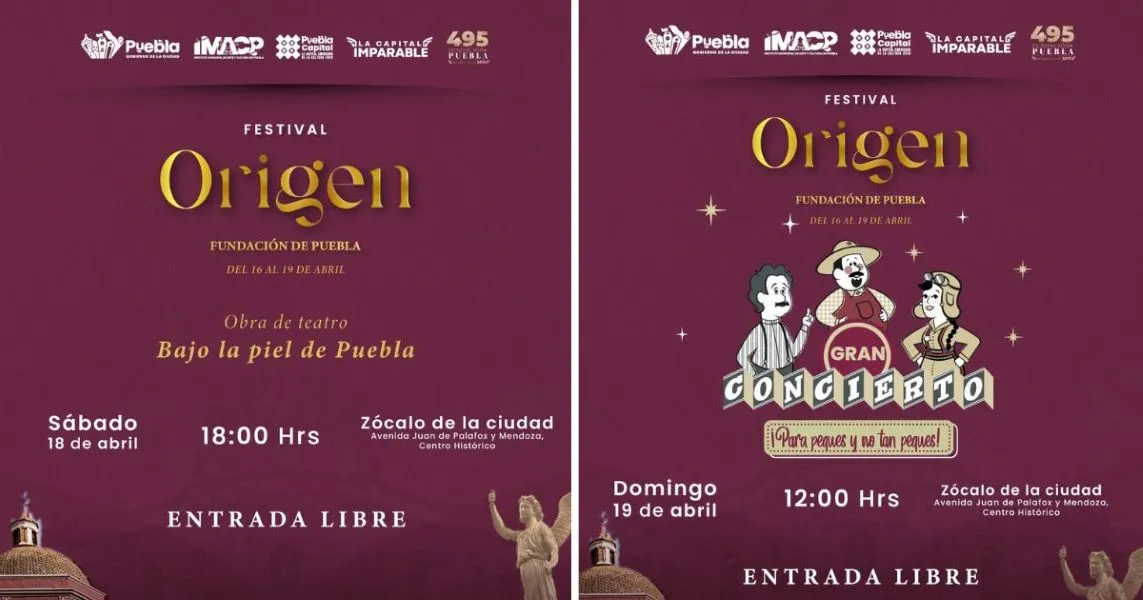 Puebla se prepara para vivir un fin de semana lleno de arte, identidad y tradición con la realización del Festival Origen, una celebración que conmemora el 495 aniversario de la fundación de la ciudad. Con actividades gratuitas de danza, música y teatro en el Centro Histórico, el evento busca fortalecer el orgullo poblano y acercar la cultura a toda la ciudadanía. El festival, encabezado por el alcalde Pepe Chedraui a través del Instituto Municipal de Arte y Cultura (IMACP), integra expresiones de danza, música y teatro en el zócalo; son gratuitas y están dirigidas a público de todas las edades. Te puede interesar: Con impulso al teatro, buscan fortalecer salud emocional juvenil en Puebla La celebración inicia este sábado 18 de abril. A las 13:00 horas, el Zócalo será escenario del concierto “Puebla, Armonía Viva” con la Orquesta Sinfónica de la Facultad de Artes de la BUAP, un homenaje a compositoras y compositores poblanos. A las 16:00 horas se presentará la obra de teatro “De la fundación a la batalla”, la cual abordará el papel de los barrios fundacionales en la construcción de la ciudad a lo largo del tiempo. Posteriormente, a las 18:00 horas, el montaje multidisciplinario “Bajo la Piel de Puebla” ofrecerá un recorrido por la memoria histórica de estos mismos barrios que dieron origen a la ciudad. ![]() El domingo 19 de abril, la fiesta continúa desde las 10:00 horas con un concierto y coreografía masiva de danzón, acompañados por la Banda Sinfónica Municipal de Puebla. Al mediodía, niñas, niños y familias disfrutarán del espectáculo de danza, circo y música “Para peques y no tan peques”, especial por la Fundación de Puebla. A partir de las 15:00 horas iniciará un recorrido monumental desde el Paseo Bravo y, a las 16:00 horas, más de dos mil danzantes se unirán en el Zócalo para interpretar “Qué chula es Puebla” de manera simultánea, en un cierre lleno de tradición y orgullo. La clausura será a las 17:30 horas con la Orquesta Sinfónica de la Facultad de Artes de la BUAP en el Teatro de la Ciudad. |
