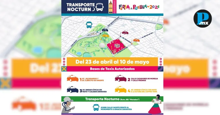 El Gobierno de Puebla implementará un operativo de movilidad durante la Feria de Puebla 2026, con la instalación de bases de taxi y la habilitación de transporte nocturno, con el fin de garantizar traslados seguros y ordenados para los asistentes. La Secretaría de Movilidad y Transporte (SMT) informó que se instalarán cuatro bases de taxi en puntos estratégicos, entre ellos Avenida Jacaranda y Ejército de Oriente, Cazadores de Morelia y Fresnos, así como sobre la Unidad Cívica 5 de Mayo en cruces con Calzada Ignacio Zaragoza y a la altura de Coffee York. Además, se habilitará un punto de abordaje nocturno en la calle 2 Norte, frente al monumento, donde operará la ruta JBS, para facilitar el traslado de usuarios al término de los eventos en la zona de Feria de Puebla. El servicio nocturno contará con cinco rutas: Cholula, Paseo Bravo, La Margarita, La María y Amalucan, que conectarán con corredores clave como Calzada Zaragoza, Diagonal Defensores de la República y Bulevar 5 de Mayo, además de puntos como CAPU, Plaza San Pedro, Cruz del Sur y Bosques de San Sebastián. Te puede interesar: Gobierno de Puebla llevará Jornada de Salud a Tehuacán con servicios gratuitos Para reforzar el operativo, se desplegarán supervisores de movilidad en accesos al recinto ferial, con el objetivo de mantener el orden y la seguridad durante la celebración. |