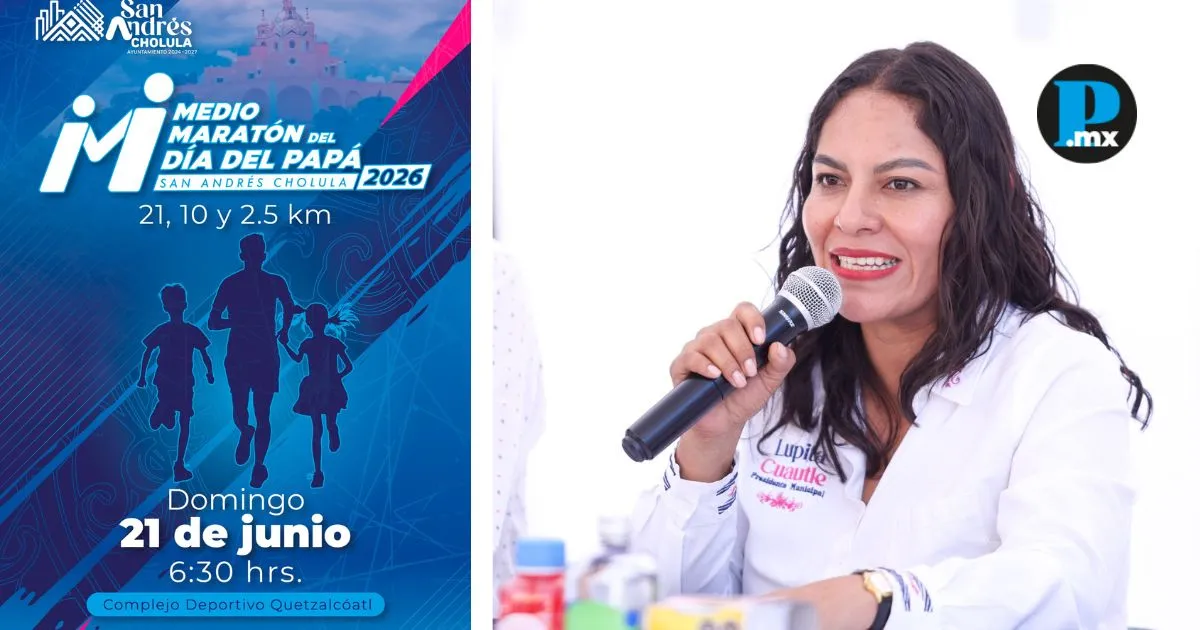 En San Andrés Cholula, la presidenta municipal Lupita Cuautle anunció la realización del Medio Maratón del Día del Papá 2026, competencia que llega a su 12ª edición y se ha consolidado como una tradición deportiva en el municipio. El evento se llevará a cabo el 21 de junio, con el objetivo de promover la convivencia familiar y el deporte en un ambiente seguro.