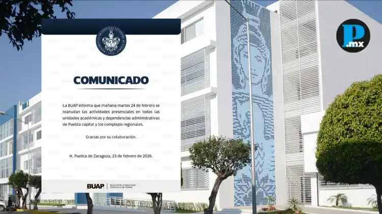 La Benemérita Universidad Autónoma de Puebla (BUAP) informó que este martes 24 de febrero se reanudarán las actividades presenciales en todas sus unidades académicas y dependencias administrativas ubicadas en Puebla capital, así como en los complejos regionales. El anuncio se da luego de que este lunes universidades públicas y privadas, así como instituciones de educación básica y media superior, suspendieran clases debido a las condiciones climáticas adversas registradas en la entidad, aunado a los hechos violentos reportados en Puebla y en distintos puntos del país. Los episodios de violencia se produjeron como consecuencia del operativo federal en el que fue capturado Nemesio “N.”, identificado como líder criminal del CJNG. Tras estos hechos, autoridades federales reforzaron la presencia de fuerzas de seguridad en diversas regiones. Te puede interesar: Universidades en Puebla retomarán actividades el martes 24 de febrero El Gobierno de México informó que se mantienen operativos de vigilancia y seguridad en los territorios donde se registraron incidentes, con el objetivo de garantizar condiciones para el desarrollo normal de actividades. En este sentido, la BUAP informó que el regreso a clases presenciales aplicará de manera general para su comunidad universitaria a partir del martes, mientras que en otros sectores las actividades se estarán retomando de forma paulatina en el transcurso de los próximos días. Finalmente, la institución agradeció la colaboración de la comunidad universitaria.