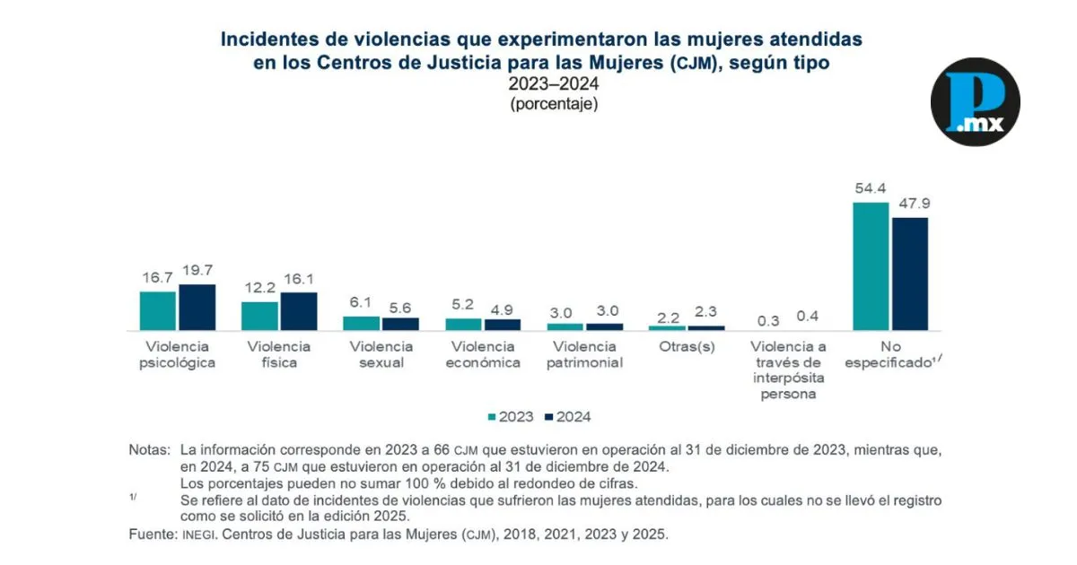 El modelo de atención en la entidad se basa principalmente en servicios presenciales y en la canalización de casos por parte de otras instituciones u organizaciones civiles. No se reporta atención remota o telefónica, lo que disminuye las vías de acceso para las víctimas y dificulta la búsqueda directa de ayuda. El informe también señaló que los CJM en Puebla operan con presupuesto estatal en su totalidad, sin aportaciones federales, y que el personal está integrado en su mayoría por mujeres, con un 69% del total. Te puede interesar: Siete de cada diez mujeres trabajan en la informalidad en Puebla: INEGI Panorama nacionalA nivel nacional, los 76 CJM del país atendieron a 638 mil 720 mujeres, lo que representó un incremento del 8.2% respecto al año anterior. Del total de atenciones, el 65.6% correspondió a seguimientos de casos previos. En cuanto a los tipos de violencia, la psicológica también fue la más recurrente a nivel nacional, con el 18.2% de los 1,405,921 incidentes registrados entre 2023 y 2024, por encima de la violencia física, que representó el 16.7%. El reporte nacional destacó además que los servicios psicológicos estuvieron presentes en el 93.3% de las atenciones brindadas en los CJM, seguidos por asesoría jurídica en el 89.3% de los casos y trabajo social en el 84%. |