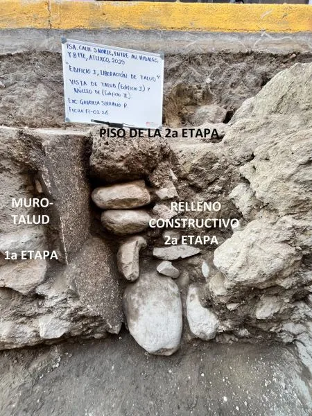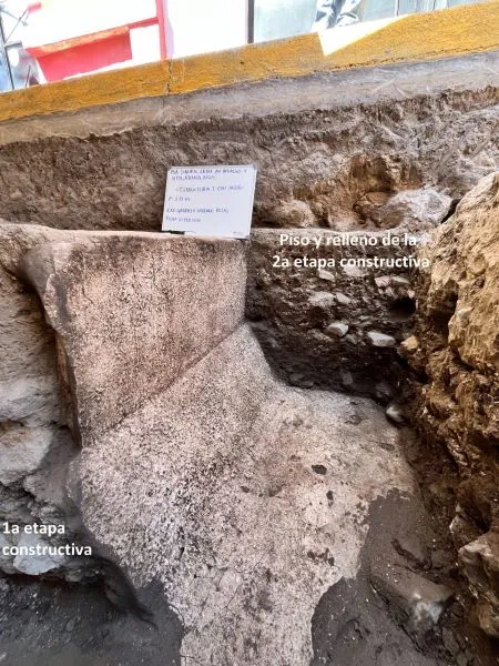 Los restos también revelan la posible existencia de otro complejo ceremonial en la zona oriente del cerro de San Miguel, lo que sugiere que los cuatro sectores de este punto estaban organizados en torno a centros ceremoniales vinculados a distintos grupos o barrios. Tras su documentación, la estructura fue protegida con materiales especiales y cubierta nuevamente para su conservación bajo la vialidad. |