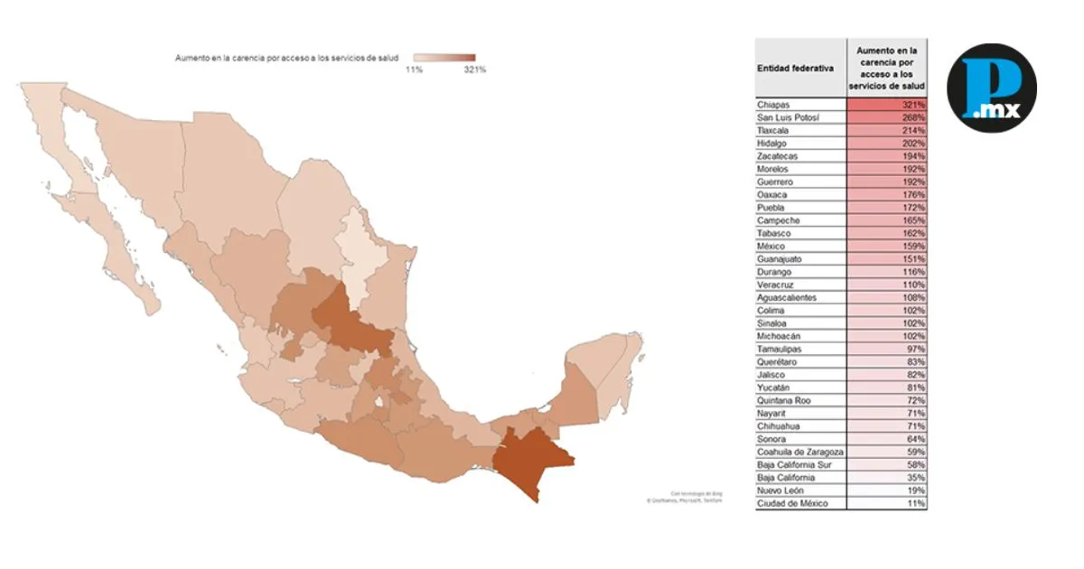 En México, los mayores niveles de carencia se concentran en el sur y sureste. Estados como Chiapas registran un 64.6% de población sin acceso a servicios de salud, seguido de Guerrero con cerca del 45%, Oaxaca con más del 44% y Michoacán con 46.1%. Entre los cinco estados donde prevalece esta brecha, también se ubica Puebla, tanto por porcentaje como por número de personas. Te puede interesar: Casi la mitad de Puebla vive sin acceso a servicios de salud Puebla, segundo lugar en carencia de servicios de salud nacionalEn Puebla, la carencia por acceso a servicios de salud alcanza el 47.7% de la población, lo que representa aproximadamente 3.2 millones de personas. Con este volumen, la entidad ocupa el segundo lugar nacional en número de personas sin acceso, solo por debajo del Estado de México. El impacto también se refleja en el gasto de los hogares. Ante la saturación del sistema público, las familias destinan en promedio el 4.2% de su ingreso trimestral a servicios privados de salud y farmacias. Al interior del estado, el acceso presenta diferencias regionales. En la Zona Metropolitana de Puebla-Cholula, aunque hay mayor cobertura, se reportan tiempos de espera de entre cuatro y seis meses para cirugías no urgentes. En contraste, regiones como la Sierra Norte y la Sierra Negra registran niveles de carencia superiores al 70%, donde influyen factores como la distancia a unidades médicas, con traslados de hasta cuatro horas, y la disponibilidad de personal de salud.