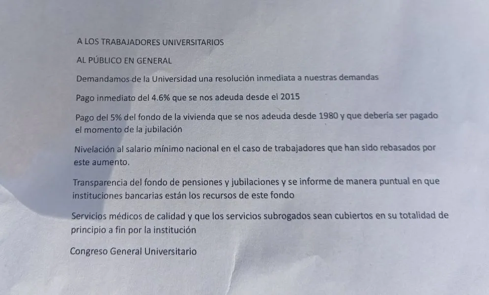 Entre sus principales exigencias están el pago del 4.6 por ciento adeudado desde 2015, el 5 por ciento del fondo de vivienda, el retroactivo de la nivelación salarial de enero de 2025 a la fecha, además de transparencia en el fideicomiso de pensiones y aumento salarial. También denunciaron deficiencias en el servicio médico, al indicar que las consultas pueden tardar de dos meses hasta un año en ser agendadas, lo que afecta a jubilados con enfermedades crónicas. Como parte de la protesta, realizaron un recorrido por la 27 Poniente y la 11 Sur, antes de instalar el bloqueo en la 31 Poniente. Cabe recordar que hace un mes, el 20 de marzo, se realizó una movilización similar frente al Hospital Universitario, en la 25 Poniente.