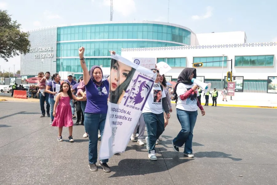 La marcha de Víctimas de Feminicidio que salió del Zócalo de Puebla, llegó a la Fiscalía General del Estado de Puebla.