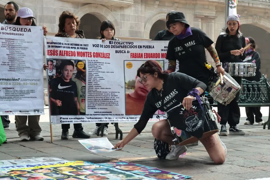 Colectivo Voz de los Desaparecidos en el Zócalo de la ciudad de Puebla Foto: EsImagen