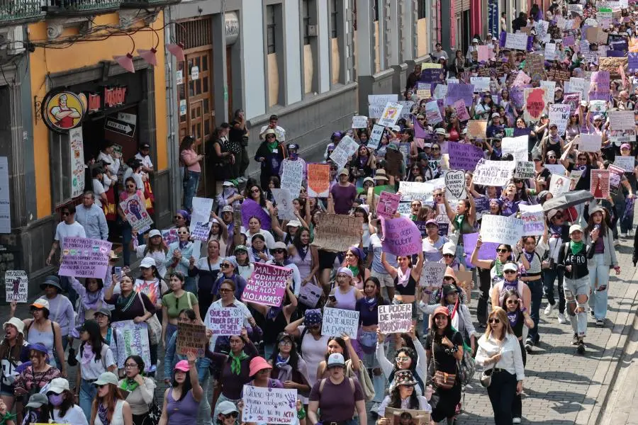 El contingente “We R Women on Fire” conformado de mujeres sobrevivientes de Feminicidio, familiares de desaparecidas y colectivos como Red la Morada, Redefine Puebla y Aborto legal Puebla, parten desde el Gallito manifestándose en el marco del 8M y con destino al Zócalo de la Ciudad.