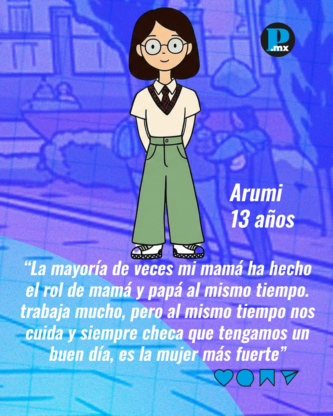 Arumi describió a su mamá como “muy fuerte mentalmente”, pues, dijo, ha pasado por situaciones difíciles, pero aun así “siempre encuentra la forma de salir adelante junto con nosotros”. Además, explicó que en su casa su madre ha tenido que asumir múltiples responsabilidades: