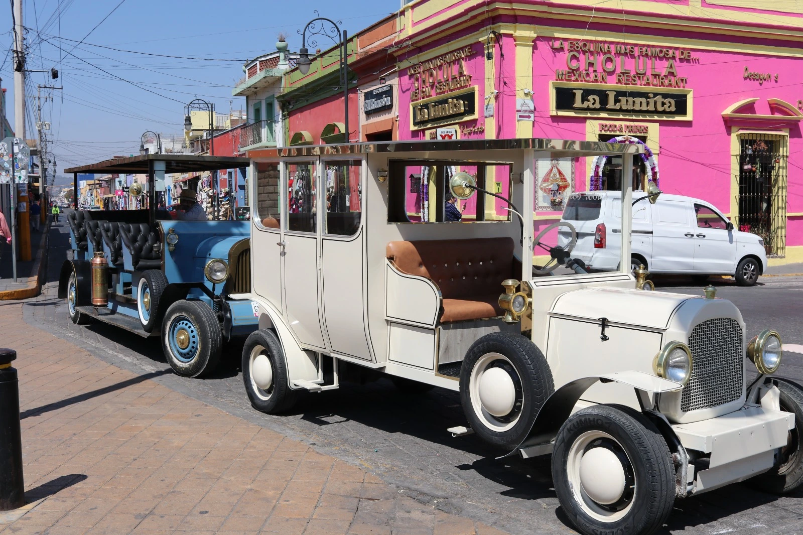 Los primeros recorridos fueron experimentales. Los vehículos fallaban, se quedaban varados o sufrían averías constantes. Hubo días en los que las lluvias anegaron las calles y los carritos avanzaban con dificultad, como si fueran lanchas. En otras ocasiones, fueron detenidos por autoridades municipales por no contar aún con los permisos necesarios. Nada era sencillo ni fluido. Aun así, Manuel persistió. Ajustó motores, cambió piezas y volvió a salir a la calle. Cada problema era una lección. Con el tiempo, los recorridos comenzaron a tomar forma y los autos dejaron de ser un experimento para convertirse en una actividad constante en San Pedro Cholula, donde el proyecto empezó a consolidarse de manera gradual. Hoy las unidades no son las mismas con las que empezó en 2018, tampoco el personal que lo acompaña en cada recorrido. Los autos dejaron de ser motocicletas modificadas para transformarse en vochitos tuneados que él mismo ensambla en un taller mecánico en San Pedro Cholula.