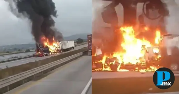 Un accidente entre dos tráileres provocó un incendio que obligó al cierre total de la autopista Arco Norte en ambos sentidos la mañana de este jueves, a la altura del kilómetro 177, en el tramo que conecta Ciudad Sahagún con Calpulalpan. El fuego, que fue captado en videos por automovilistas y rápidamente circuló en redes sociales, generó columnas de humo visibles a gran distancia. Las autoridades informaron que el siniestro ocurrió poco antes de las 07:00 de la mañana, previo a una caseta de cobro de la vía. Debido a la magnitud del incendio y los riesgos que representa, la circulación fue detenida completamente, lo que ha causado largas filas de automóviles y unidades de carga detenidas en ambos sentidos. Personal de bomberos, protección civil y seguridad se encuentra en el lugar realizando labores para sofocar el fuego, controlar los riesgos y liberar la autopista. Hasta el momento no se ha confirmado el estado de salud de los conductores involucrados ni se han revelado las causas exactas del accidente. Te puede interesar: Más de 10 heridos tras accidente en la autopista Cuacnopalan-Oaxaca Como rutas alternas, las autoridades recomiendan tomar la salida hacia San Martín Texmelucan o dirigirse hacia la caseta de Tulancingo, mientras continúan las labores de atención a la emergencia. Se prevé que el cierre continúe durante varias horas más, por lo que se exhorta a los conductores a evitar la zona y mantenerse atentos a los informes oficiales.