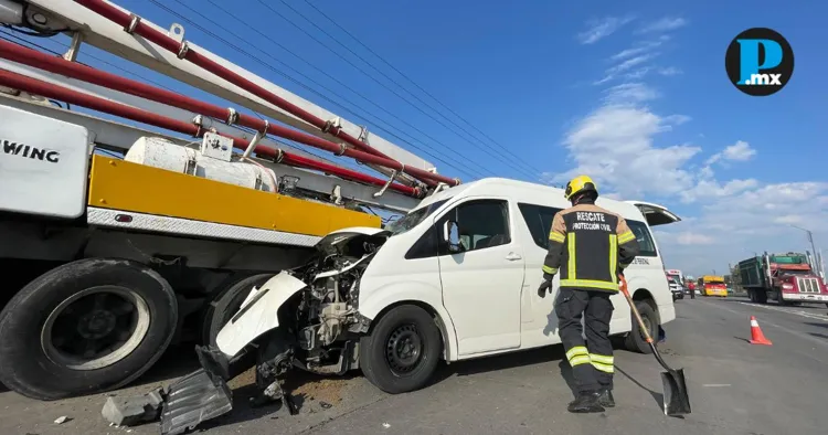 Un choque por alcance entre una camioneta tipo van y un camión bomba tipo pluma se registró alrededor de las 7:30 de la mañana de este viernes en el Periférico Ecológico y la incorporación a la 24 Sur, en Puebla. De acuerdo con versiones preliminares, el conductor de la van presuntamente se habría quedado dormido al volante cuando concluía su jornada laboral y se dirigía al encierro de la unidad. En ese momento impactó contra la parte trasera del vehículo pesado, lo que provocó daños materiales en la parte frontal de la camioneta. En el vehículo de transporte solo viajaba el conductor, quien resultó con una lesión leve en la mano izquierda, mientras que la zona del copiloto quedó severamente dañada. Choque en Periférico Ecológico Foto: EspecialTe puede interesar: 20 accidentes en 3 meses: el Periférico Ecológico una vía rápida y peligrosa Al lugar acudieron elementos de Proximidad Vial como primeros respondientes para abanderar la zona y, posteriormente, personal del Cuerpo de Bomberos del Estado de Puebla para realizar labores de mitigación de riesgos. Las maniobras para el retiro de las unidades se extendieron durante gran parte de la mañana, lo que generó afectaciones en la circulación.