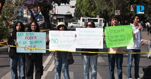 Estudiantes del Conservatorio de Música de Puebla realizaron un bloqueo la mañana de este lunes sobre la calle 11 Sur, a la altura de Avenida Reforma, para exigir mejores condiciones en su plantel y la apertura de una mesa de diálogo con la Secretaría de Educación Pública (SEP) estatal. La protesta afectó la circulación en una de las vialidades más transitadas de la ciudad, donde las y los alumnos se concentraron con pancartas y consignas para visibilizar sus demandas. Entre ellas, señalaron presuntas deficiencias en la plantilla docente, así como problemas en la infraestructura del conservatorio.