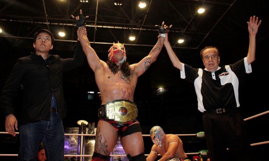 Entre el sonido de las trompetas surgió un descuido del retador, al ponerse de pie, fue sometido por el campeóndejándolo en la lona y un lance desde la tercera cuerda dio el triunfo para Dragón Rojo en el segundo round, sometió la cabeza de Ángel de Oro entre sus piernas, a la par que su brazo quedó inmovilizado entre los hombros del vencedor. Para el round final del duelo parecía que no iba a ver un ganador, ambos estaban decididos en cosechar la victoria; el espectáculo estaba en el centro del ring, ambos golpeaban sus pechos, hasta que el luchador de la careta de oro rompió la tensión con una patada al pecho del rudo, lo puso sobre la lona pero el conteo del referí se quedaba en dos y la lucha seguía. Dragón Rojo parecía quedarse sin voluntad, pero las palabras de Bobby Z ayudaron a levantarse a defender su título, con un cabezazo al esófago del rival, acompañado por una petición de aplausos de todo su grupo de aficionados que exigían la cabeza del adversario, pero el enmascarado de oro no se dejó achicar con tanta facilidad ycon una serie de llaves entre ambos buscaban la rendición de su oponente, la cual no llegaba. La suerte no le sonrió al retador, la furia del Dragón Rojo se hizo presente al aplicarle una llave sobre su espalda, hasta debilitarlo con unos giros por el cuadrilátero que desgastaron sus articulaciones y así por fin de un gran espectáculo definir un ganador, el campeón seguía manteniendo su título y demostraba en la Arena Puebla su valentía y poder luchístico; Ángel de Oro tuvo que ser atendido por los paramédicos, mientras el referí declara triunfante a Dragón Rojo acompañado por Bobby Zy así mantener su cinturón de campeón mundial de peso medio del CMLL. |