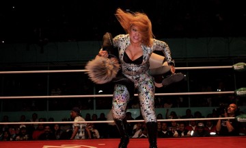 En la parte contraria del ring, Estrellita y Amapola luchaban por la revancha, pero esta última no pudo ante la mezcla de llaves en su cuello que terminó debilitándola, la cargó para centrarla en el cuadrilátero, mientras su compañera arrastraba a un lado el cuerpo de Tiffany. Ambas se arroja desde la tercera cuerda, pero no paró la masacre no paró ahí y las retadoras se pusieron de pie para continuar la batalla. La noche terminó con un par de latigazos de Estrellita y Lluvia a los cuellos de Tiffany y Amapola, una combinación que las dejó indefensas, debido a que el réferi debió marcar un nocaut técnico al no poderse levantar solas, por lo que debieron salir abrazadas, rumbo a los vestidores, para sacudir su vergüenza. |