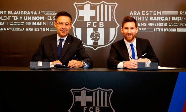 Lionel Messi firmó este sábado un nuevo contrato con el Barcelona por cuatro años más, y que incluye una cláusula de recisión por 700 millones de euros, informó el equipo español. De acuerdo con información de la agencia AP, el contrató concluirá en 2021, cuando el astro argentino tenga 34 años. "Estoy contento de seguir vinculado al club, que es mi casa", dijo Messi. "Siempre quise hacer toda mi carrera acá". La cláusula millonaria tiene como fin alejar a equipos como el Paris Saint-Germain, que fichó al brasileño Neymar por 222 millones de euros (262 millones). Messi y Barcelona habían acordado el contrato nuevo en junio, pero la salida de Neymar obligó a elevar al cláusula de recisión al doble. No hay detalles sobre el salario de Messi, pero El Mundo publicó que el jugador recibirá 30 millones de euros (35,8 millones de dólares) por temporada y una prima de 50 millones de euros a la firma del contrato. Messi ha sido el corazón y el alma del Barcelona por más de una década. Cinco veces ganador del Balón de Oro al mejor jugador, también ha conseguido 30 títulos con el club desde que llegó de Argentina a los 13 años de edad. Estos incluyen cuatro en la Liga de Campeones y ocho en la Liga de España. Messi es el líder de goleo de todos los tiempos con 523 goles en 602 partidos. El viernes recibió su cuarto premio de la Bota de Oro como máximo anotador de ligas europeas la campaña anterior. "El objetivo es seguir logrando cosas, llenar las estanterías del club de trofeos y seguir haciendo historia en Barca", dijo Messi. "Hemos tenido la suerte de ganar muchas cosas y espero que haya más en el futuro". |