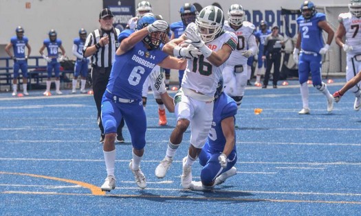 Ya son 6 años en que los Aztecas de la UDLAP conocen únicamente el término ganar en la casa de los Borregos Toluca, porque en ese lapso de tiempo acumulan igual número de victorias; incluyendo la de este sábado en un partidazo definido por una intercepción y un regreso de patada. Transcurrían 12:32 minutos del segundo cuarto cuando Alfredo Linares encontró a Sebastián Olvera por la banda izquierda, para avanzar hasta la yarda 9 donde fue detenido; en la siguiente jugada Kevin Correa avanzó por tierra ese tramo para la primera anotación del juego (7-0). 5 minutos después, los Borregos en una jugada de empuje ofensivo por conducto de Maximiliano Lara, igualaron las acciones (7-7) y en los últimos segundos Enrique Yenny logró un gol de campo de 47 yardas para mover la balanza para el lado azul (7-10). Volviendo de la pausa intermedia, 93 atrapó un pase de touchdown que ponía la situación complicada para la Tribu Verde (7-17); quien no encontraba la forma en cómo salir del bache por más que lo intentaba. Hasta que a los 12:36 minutos del último periodo, Joel López consiguió una intercepción para llevar el ovoide a tierra prometida en un gran salto para esquivar a un rival (14-17). La euforia de la anotación regresaba al juego a los Aztecas para buscar el triunfo. Pasando los 10:21 minutos, Gerardo Retana capturó el balón tras la patada de despeje por ahí de la yarda 70, hizo un corte hacia el centro del campo para tomar la banda izquierda, avanzó unas yardas hasta que se encontró con un defensivo toluqueño, para quitárselo giró a su derecha encontrando una vereda completamente sola hasta la línea final del campo (21-17). Los minutos restantes fueron un manojo de nervios entre intentos de ataque por parte de ambos conjuntos. El último fue de Toluca, que con menos de un minuto en el cronómetro intentó e intentó como un vendaval, pero solo pudo llegar a media cancha pues la Gran Muralla Verde se levantó poderosamente para detenerlos. "Desgraciadamente íbamos perdiendo, pero a partir de la intercepción cambiamos la mentalidad del equipo, hicimos nuestro trabajo y las jugadas llegaron solas", así resumió el juego Joel López, safety de la Ola Verde para concretar la victoria y regresar la frenta del inicio de temporada a los Borregos en su casa, la llamada Congeladora.
