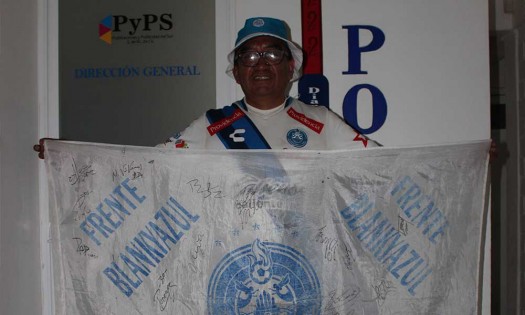 Pregunta ¿cómo viste ese primer campeonato de Puebla contra Chivas? Todo hacía indicar que los campeones iban a ser las Chivas, en ese momento la gente muy metida con el equipo, muy identificada con el equipo, no teníamos los problemas de violencia. Ya desde allí ya comenzábamos con el gusto de la porra, ya nos acercábamos con Pepe El Grillo que era el porrista en ese momento. ¿Cómo formaron esas porras? La porra se formó como una copia de las porras del politécnico y la UNAM y por la difusión de las películas de ese momento. Allí el objetivo era que te tomaran en cuenta, que te identificaran, porque en ese momento la porra entraba gratis, hoy no es así, la porra tiene que pagar, todos los de la porra pagamos. ¿Cómo es la estructura de la porra? La porra tiene su líder general y su nombre es el frente blanquiazul. Yo le llamo oficial porque es la que reconoce la liga y la que reconoce la directiva. Nosotros nos ubicamos siempre en la parte trasera de la portería azul. Esta porra se compone de barrios. ¿Cuántos personajes conforman la porra? En promedio el torneo pasado éramos 450 personas, ahorita rebasamos las 500 porque la porra anteriormente era la Legión Dragón, ahora esa porra se ha fragmentado porque no comulgamos con mucha forma de ser de otras personas. Nosotros somos una porra comprometida con la seguridad, tenemos que establecer límites y velar por la seguridad. ¿Antes uno hasta llevaba sus tortitas? Yo llevaba al estadio mi grabadora, mi tele, mi corneta, la bandera, la gorra, la gente se sentaba a ver la repetición y aparte escuchábamos la grabación y teníamos la porras de 'A la bio, a la bao, y la ola… |