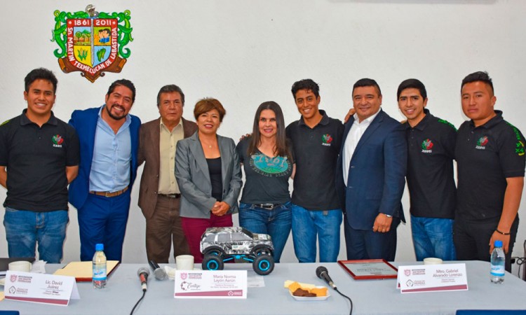 Norma Layón, presidenta municipal de San Martín Texmelucan, se reunió con los integrantes de la Escudería Xólotl, alumnos del plantel Conalep 149, que representará a México en el Mundial de Prototipos a llevarse a cabo del 12 al 27 de abril próximos. Los estudiantes fueron reconocidos por la alcaldesa, al tiempo que ellos compartieron con Norma Layón las dificultades y satisfacciones que han pasado para llegar para ser representantes del País en el evento a llevarse a cabo en Reino Unido. José Antonio Torres Ortega, Luis Fernando Solano Barbosa, Jesús Javier Solano Barbosa, Francisco Javier Flores Carrillo, Ricardo Ramón Palma Jiménez y Omar Becerra Zambrano son los jóvenes talento que realizaron modificaciones a un vehículo a escala de la marca Land Rover para ser seleccionados para la final mundial. Parte del trabajo realizado por estos alumnos del plantel Conalep 149 San Martín Texmelucan puede ser consultado en las redes sociales creadas por tal fin, bajo el nombre de Escudería Xólotl 4x4 in Schools. De esta manera, la administración municipal encabezada por Norma Layón da muestra de su apertura y de su compromiso por mantenerse cerca de la población, conociendo sus necesidades y dando posibles soluciones para hacer de San Martín Texmelucan una ciudad de primera. |