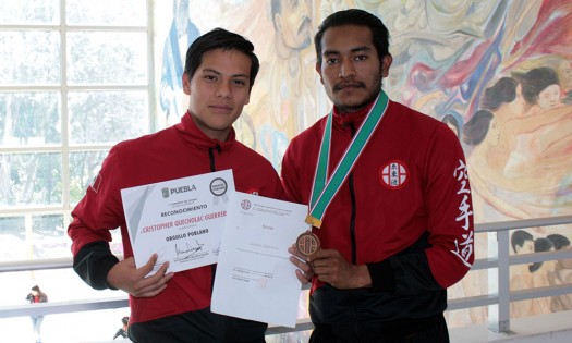 Los estudiantes Cristopher Quecholac Guerrero y José Emanuel Carbarin Sánchez, estudiantes de la Facultad de Ciencias de la Computación de la Benemérita Universidad Autónoma de Puebla (BUAP), integraron el grupo mexicano que obtuvo medalla de bronce en la categoría de kumite por equipos durante el Noveno Campeonato Mundial de Karate do Shito-ryu, realizado en Tokio, Japón, el mes pasado. Después de vencer tres peleas a dos al grupo de Kazajistán, el equipo mexicano ganó el tercer lugar de su categoría, en la cual participaron deportistas de más de 14 países como: China, India, Venezuela, Estados Unidos y Japón. También puedes leer: Gana poblana pase a juegos de Panamericanos de Lima 2019Quecholac Guerrero, además, ganó el primer lugar en la categoría kumite -67 kg en la reciente Universiada Regional 2019, que tuvo lugar en Xalapa, Veracruz, con lo cual obtuvo su pase para competir en la Universiada Nacional que se realizará en la Universidad Autónoma de Yucatán. Para ser seleccionados para el Noveno Campeonato Mundial de Karate do Shito-ryu, Cristopher y Emanuel pasaron por un proceso de ranking, que tuvo una duración aproximada de dos años, en donde participaron en distintas competencias que les permitieron sumar puntos y estar entre los primeros lugares de la clasificación. Cristopher Quecholac Guerrero lleva casi 13 años practicando karate, y asegura que "ha sido un esfuerzo constante no solo mío, sino también de mi familia y mis entrenadores"; posteriormente, en 2018 obtuvo el oro en la Copa Mabuni y la plata en la Copa Choda. Por su parte, José Emanuel tiene casi 15 años entrenando y para él la disciplina ha sido el factor principal para continuar en este arte marcial, el cual le interesó por la cultura japonesa. Carbarin Sánchez ha sido medallista de oro en las copas Choda y Mabuni, en 2017 y 2018; obtuvo el bronce en el Selectivo Panamericano 2016 y también en la Olimpiada Nacional 2012; además ganó el oro en la Olimpiada Nacional 2009. |