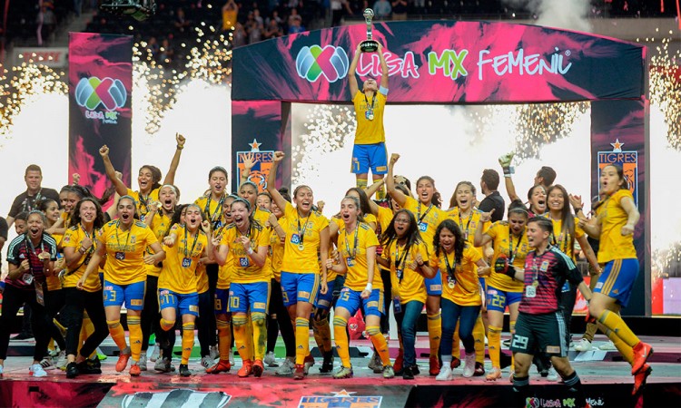 Las Tigres de la UANL derrotaron hoy por 1-2 a las Rayadas de Monterrey y se convirtieron en el primer equipo en ganar por segunda vez el título de la liga de mujeres del futbol mexicano. Blanca Solís (m.9) y Jacqueline Ovalle (m.25) convirtieron por el Tigres; y Alicia Cervantes (m.68) descontó por las Rayadas en un resultado que le dio a las Felinas una victoria de 3-2 en la final, tras un empate a 1-1 en el duelo de ida. En el primer minuto de juego Solís disparó desde atrás en la primera llegada de las Tigres del entrenador Ramón Villa Zeballos, pero las Rayadas estuvieron a punto de abrir el marcador en el minuto 3 con una llegada de Desiree Monsiváis. Tigres tomó ventaja en el minuto 9. Solís aceptó un servicio de Jacqueline Ovalle, y convirtió de cabeza para darle a su equipo una ventaja de 0-1. Las visitantes mantuvieron la iniciativa y en el 25 ampliaron la diferencia con un potente golpe de pierna derecha de Ovalle para poner la pizarra a 0-2 y asegurar el campeonato. Lee: Posponen partido América-León por la mala calidad del aireMonterrey trató de reaccionar y terminó mejor la primera mitad, pero careció de contundencia con un par de disparos por fuera de Desiree Monsiváis y uno de Dinora Garza. Para la segunda parte el partido se desarrolló a buen ritmo, con oportunidades para los dos cuadros. Las Tigres crearon peligro un par de veces, una en el minuto 66 con un disparo de larga distancia de Belén Cruz, y Monterrey respondió de la mejor manera con un golpe de zurda para meter el balón en la red, al sacar provecho de la mala marca. Monterrey levantó su juego y Tigres buscó aprovechar los espacios y en el 74 estuvo cerca de ampliar la ventaja con un remate de Liliana Mercado incrustado en el travesaño. Ovalle hizo dos disparos con peligro por Tigres en el minuto 90 y Monterrey se fue con todo adelante en los cinco minutos de compensación, pero Tigres aguantó y ganó su segundo título en tres finales consecutivas.