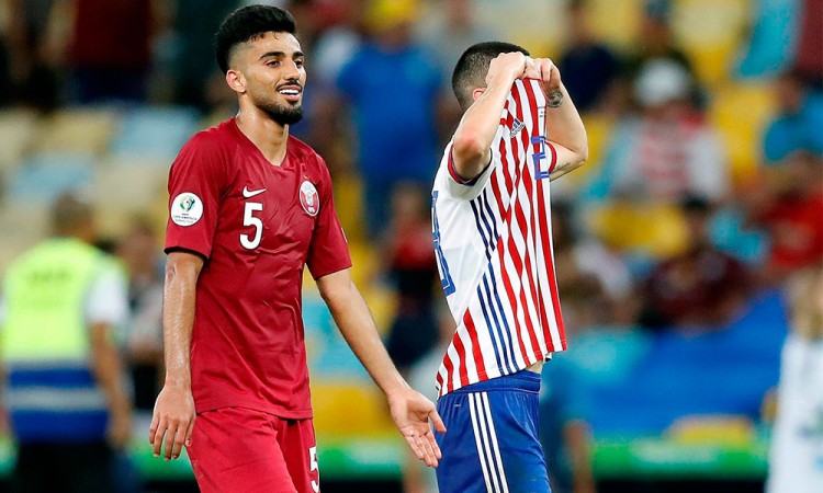 Qatar mostró sus credenciales de campeón de Asia al sustraer a Paraguay un empate 2-2 en el estadio Maracaná de Río de Janeiro, pese a que perdía por 2-0. Paraguay comenzó presionando desde el pitido inicial y, en una salida equivocada de Qatar, Arzamendia casi abre el marcador en el primer minuto de juego. Pero los hinchas paraguayos no tuvieron que esperar mucho para celebrar porque un minuto después, tras una falta cobrada por Almirón, un cabezazo de Balbuena se chocó en la mano del portugués nacionalizado qatarí Pedro Correia y el árbitro marcó el penalti sin ayuda del VAR. Pese a que Paraguay intentó aprovechar la ventaja inicial para salir al ataque en jugadas lanzadas por Almirón y Pérez, la selección qatarí consiguió superar su letargo inicial, comenzó a organizarse y a salir ordenadamente por las puntas, en jugadas que obligaron al portero Fernández a intervenir varias veces. Hassan Al-Haydos, el más veterano del joven equipo qatarí, comenzó a jugar con tranquilidad, a avanzar por la derecha y a generar varias jugadas de peligro. Lee: Argentina sucumbe ante ColombiaEn medio del dominio asiático con un toque de bola que mostró la mano del técnico español Félix Sánchez y su escuela barcelonista, Paraguay consiguió respirar por 5 minutos y concretó tres ataques peligrosos con Almirón y Domínguez, que por poco le permiten ampliar el marcador. Pero Qatar volvió a asumir rápidamente el dominio y casi logra el empate gracias a una jugada de Al-Haydos que encontró al goleador qatarí Almoez Ali libre dentro del área, pero su disparo exigió una atajada de Fernández. Para intentar sacudirse del dominio asiático, el técnico de Paraguay, el argentino Eduardo Berizzo, sacrificó al volante Pérez y mandó a la cancha al comienzo del segundo tiempo a Derlis González, lo que le permitió tener tres jugadores en el ataque. El propio González, que le dio una nueva cara a Paraguay y lo puso en el ataque, consiguió ampliar el marcador a los 11 minutos del segundo tiempo, con un disparo desde lejos. Qatar no se rindió; descontó doce minutos después por intermedio de Almoez Ali y llegó al justo empate a 13 minutos del final con un gol de Khoukhi, tras una gran triangulación y una salida en falso de Fernández. La segunda jornada del Grupo B enfrentará el 19 de junio a la sorpresiva selección asíatica con Colombia y a la necesitada Argentina de Messi contra Paraguay. |