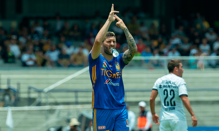 El francés André Pierre Gignac convirtió de cabeza este domingo para llegar a 105 anotaciones y convertirse en el máximo goleador de los Tigres UANL, que vencieron por 0-1 a los Pumas en el torneo Apertura del futbol mexicano. En un encuentro con la primera mitad dominada por los universitarios que dirige el entrenador español Míchel, los Tigres vinieron de menos a más y al tener un jugador de más desde el minuto 71 apretaron el acelerador y se llevaron el triunfo. Los Pumas, que venían con paso perfecto, impusieron su juego en los primeros 45 minutos y crearon varias situaciones de gol. Lee: Dr. Wagner Jr anuncia que seguirá activo un año másLa segunda mitad fue diferente porque los Tigres rozaron la posibilidad de gol en el minuto 47, cuando el chileno Eduardo Vargas estrelló el balón contra un palo. Desde entonces impusieron las condiciones. El antes y el después del duelo llegó en el 77 con la expulsión del colombiano Jeison Angulo por acumulación de tarjetas amarillas. Aunque Luis Quintana tuvo una llegada por Pumas que pudo terminar en gol, el resto del partido fue de los Tigres en busca del gol, que llegó en el 89, cuando Luis Rodríguez le puso un servicio a Gignac y el francés remató de cabeza para decidir el duelo y ubicar al ariete europeo como el más grande goleador del equipo. Los Tigres sumaron su segunda victoria del torneo, tras una derrota, y con seis puntos subieron al quinto lugar, con las mismas unidades de los Pumas, pero con peor diferencia de goles. |