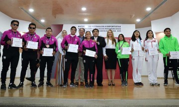 Los deportistas que recibieron estímulos son: Victoria Cruz de karate; Diana Luna de natación; Marcos Madrid de tenis de mesa; Claudia Romero e Iván Torres en taekwondo; Laura Coraza paraatletismo; Moisés Cereso, Omar Otero y Eduardo Cereso en futbol 5 ASIDE; entre otros que resultaron ganadores en Lima 2019. |