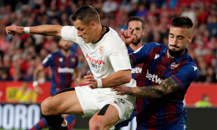 El Sevilla se ha situado sexto en la liga española, empatado a puntos con el Atlético de Madrid y la Real Sociedad, tras vencer al Levante con un gol del holandés Luuk de Jong, al que Chicharito Hernández arrebató este domingo la titularidad y que marcó su primer tanto como sevillista. Los sevillistas lograron una trabajada victoria ante un Levante ordenado y que adoleció de mayor poder para salir en ataque, sobre todo en una segunda mitad que los andaluces dominaron de principio a fin y tuvo numerosas ocasiones, aunque al final sólo acertaron por medio de De Jong, que terminó con su sequía con un gol de cabeza a cinco de la conclusión para premiar los méritos de su equipo. En el primero de sus tres choques seguidos en casa (Levante, Dudelange y Getafe) dentro de una serie de siete en 22 días, Julen Lopetegui introdujo cambios en el once sevillista con el central galo Jules Koundé por el luso Daniel Carriço, lesionado de última hora, y sobre todo el mexicano Chicharito Hernández por primera vez titular en Liga por el holandés Luuk de Jong. Lee: Suspenden partido de Liga MX tras violencia de porrasPara un partido que el Sevilla afrontaba con la idea de olvidar su dolorosa goleada con el Barça (4-0) y el Levante animado por su primer triunfo fuera, en Leganés, el técnico Paco López, también salió con variantes, más de hombres que de sistema, con las novedades de Toño García, Gonzalo Melero y Hernani Santos. Chicharito, solo ante Aitor, falló un gol cantado al disparar desviado. Antes Hernández colocó el 1-0 pero fue anulada su anotación.