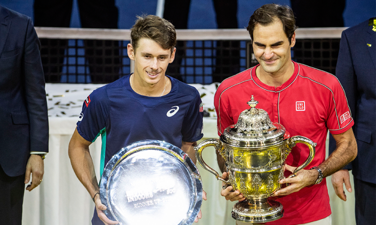 Para Alex de Miñaur, hijo de madre española y padre uruguayo, el primer enfrentamiento con Roger Federer fue un suplicio. El australiano, campeón este año en tres torneos de la gira ATP (Sydney, Atlanta y Zhuhai) disputaba la sexta final de su carrera, pero en esta cita no pudo con el servicio del tenista suizo, que se coronó en su país. |