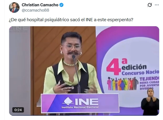 Violencia digital transfóbica y reacciones en redes socialesTras el anuncio del premio, el trabajo y la identidad de “Gato que pinta” fueron objeto de ataques y descalificaciones en redes sociales por parte de personajes públicos. Entre ellos, el empresario Ricardo Salinas Pliego, propietario de TV Azteca y Grupo Salinas, quien cuestionó públicamente al artista y al propio INE, generando una ola de comentarios ofensivos dirigidos a la persona creadora de contenido. A estas expresiones se sumaron mensajes de Christian Camacho, quien fuera operador y consultor en redes sociales de la bancada del Partido Acción Nacional (PAN) en el Senado de la República, quien publicó comentarios de carácter violento y estigmatizante, entre ellos la frase: “¿De qué hospital psiquiátrico sacó el INE a este esperpento?”. Dichas expresiones fueron señaladas por organizaciones y usuarios como actos de violencia simbólica y transfobia en el entorno digital.