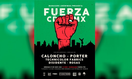 Como parte del proyecto Fuerza CDMX, diversas bandas de indie rock ofrecerán un concierto el próximo 27 de septiembre en el C3 de Stage de Guadalajara, Caloncho, Porter, Technicolor Fabrics, Disidente y Rosas, son quienes se unirán con el fin de recaudar fondos para los afectados del terremoto del 19 de septiembre. En un comunicado, se indica que el objetivo de la presentación es sumar esfuerzos en las labores de reconstrucción que se realizarán en la Ciudad de México y el centro del país. Para ello, las ganancias del evento con costo de 250 pesos, serán donadas a la Cruz Roja Mexicana, así como diversas organizaciones sociales y brigadas de rescate. Con información de Milenio |
