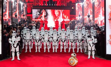 Ha llegado a la pantalla grande el film central de la nueva trilogía de Star Wars: Los últimos jedi, octavo de la mítica saga galáctica que inició el director norteamericano George Lucas, esta cinta se realizó bajo la dirección de Rian Johnson. Las cintas de Star Wars han acompañado a los niños en su transición a la edad adulta, abordando el tema del bien y el mal del que siempre se habla en casa. El más reciente filme de la saga estrena con buenas críticas en Reino Unido en medio de las especulaciones sobre las sorpresas que presentará el más reciente episodio de Star Wars, el Royal Albert Halll de Londres fue el escenario para el estreno. Un desfile de estrellas hizo su aparición en la alfombra roja en la sala de conciertos, entre los asistentes se encontraban los príncipes Enrique y Guillermo. El actor que protagoniza a Finn, John Boyega, insinuó que los príncipes, nietos de la reina Isabel II, harán una breve aparición como parte de la tropa de los Stormtroopers. La alfombra roja se lución con los pasos de las protagonistas Daisy Ridley (Ray) y John Boyega (Finn), así como Mark Hamill (Luke Skywalker), Gwendoline Christie (Capitán Phasma) y Benicio del Toro (DJ). Entre los seres galácticos no podían faltar los Stormtroopers, Chewbacca, y los adorables androides C-3PO, R2-D2 y BB-8. Por el momento las críticas de cine han sido condesendientes con el director Ryan Johnson, la historia y las actuaciones estelares. El diario The Telegraph le otorgó cinco estrellas y la describió como "un ejemplo de éxito de taquilla en la producción de cine", mientras que The Guardian aplaudió la actuación del estadunidense Adam Driver que da vida al villano Kylo Ren. La nueva cinta, que es el episodio VIII promete ser más rápida y divertida que Star Wars: El despertar de la fuerza (2015). Las principales salas de cine estrenaron la cinta el miércoles a la medianoche en una función que es un éxito entre los fans de la saga que se estrenó por primera vez en 1977. Esta es la tercera película producida por los estudios The Walt Disney Company desde que le compró los derechos a LucasFilm en 2012. Esta es la última película de Carrie Fisher (Princesa Leia), quien murió en diciembre del año pasado, poco después de haberla filmado. |