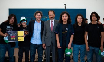 Las instalaciones de la Concha Acústica del Jardín Botánico Universitario retumbaron al ritmo de la música durante el Rock Duel BUAP 2019, competencia de bandas de rock independientes en la cual el rector Alfonso Esparza Ortiz entregó el primer lugar al grupo Acromegalia. Conformada por Edson Arce Castillo, Gabriel Vázquez Pérez, Irving Castillo Sandoval, Elías Campos Espejo y Alexis Limón Casales, la banda obtuvo 10 mil pesos en efectivo, además de ser la que tocará como principal en una unidad de McCarthy's Irish Pub. También lee: Los abuelos más icónicos de la televisiónTras entregar el premio, el Rector Esparza señaló que el objetivo de esta actividad, en la cual se inscribieron más de 40 bandas, aunque solo compitieron 22 grupos, fue generar convivencia, fomentar el talento universitario y trabajar en equipo. Las diez bandas finalistas serán invitadas para incorporarse a un programa de la Vicerrectoría de Extensión y Difusión de la Cultura, a través del cual serán escuchadas en diversos escenarios de la Universidad.