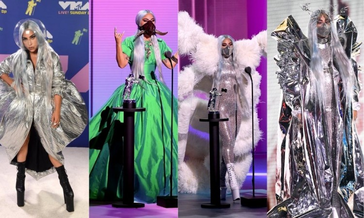 La polémica cantante durante sus múltiples apariciones en el programa, Gaga mostró una impresionante colección de máscaras, pero es justo suponer que no las encontró en una tienda GAP o que se las envió por correo su tía que sabe coser. Estas máscaras eran 100 por ciento lo que uno esperaría de Gaga, la mujer que una vez convirtió la charcutería en una declaración de moda. La noche de este domingo 30 de agosto los premios MTV Video Music Awards 2020 (VMAs) se celebraron de una forma inusual, sin público y con presentaciones pregrabadas; aun así, la cantante Lady Gaga logró una explosión en redes sociales al mostrar algunos cubrebocas que impactaron a los internautas. Tal vez el atuendo que más llamó la atención de sus seguidores, incluso generando memes al respecto, fue el complemento que formó entre un vestido plateado brillante con bastante volumen en la parte de abajo y una tela que se asemeja a la de los trajes de astronautas, acompañado de una esfera de cristal en la cabeza que hizo recordar al personaje de Bob Esponja, Arenita. Al momento de gana el premio a la canción del año con Rain on me, en colaboración con Ariana Grande, destacó su tapabocas negro con dos grandes cuernos que parecen salir de sus mejillas. Otra de sus mascarillas llamativas, también negra, tiene en la parte delantera una pantalla que según internautas 'asemeja a un robot hablando'. Uno que también destacó fue el que bautizaron en internet como “el insecto”, tapabocas color rosa que por su forma recordó la boca de algún pequeño animal. Este indumento se sujeta por los costados y por la parte superior de la cabeza.