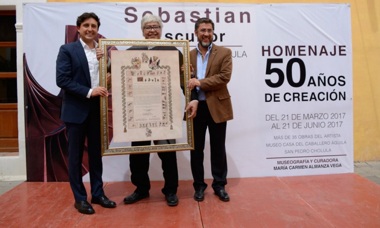 El reconocido artista plástico mexicano Enrique Carbajal, mejor conocido como Sebastián, cumple 50 años dedicado al arte y, como parte de sus festejos, presentó el pasado 21 de marzo una parte de su obra escultórica en el Museo Histórico Casa del Caballero Águila en San Pedro Cholula con la exposición homenaje 50 años de Creación, que exhibirá 35 obras, muchas de las cuales se encuentran en países como Estados Unidos, Japón y México. El presidente municipal de San Pedro Cholula, José Juan Espinosa Torres, y Sebastián cortaron el listón de la exposición para después recorrer las salas que podrán ser visitadas hasta el próximo 21 junio.