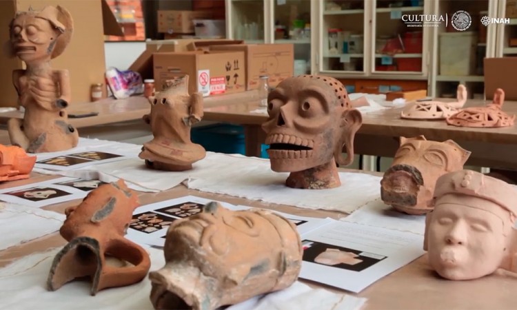 Tras tres años de exploración, coordinados por la arqueóloga Noemí Castillo Tejero, apareció un conjunto de 12 esculturas de barro, denominadas xantiles, depositadas como parte de una ofrenda que corresponde a un osario en el interior de la edificación llamada Altar de los Cráneos, localizada junto al muro sur que delimita el conjunto central de la Zona Arqueológica de Tehuacán, según información difundida por el Instituto Nacional de Antropología e Historia (INAH). Los xantiles son esculturas en barro con el cuerpo modelado, a veces de forma cónica, y el rostro elaborado en molde, representan a deidades del panteón mesoamericano del valle de Puebla y el norte de Oaxaca; fueron utilizadas por los popolocas para el culto en espacios domésticos. Algunas piezas de este osario aparecieron rotas intencionalmente o "matadas" como parte del ritual de clausura de la primera etapa constructiva de la edificación. Las piezas se trasladaron a la Escuela Nacional de Conservación, Restauración y Museografía (Encrym), donde fueron intervenidas en el Seminario Taller de Restauración de Cerámica; posteriormente se llevarán al Museo de Sitio de la Zona Arqueológica de Tehuacán para su exhibición. La restauradora Monserrat Salinas Rodrigo detalló que recibieron doce piezas de barro en distintos estados de conservación. "Unas estaban muy fragmentadas y otras requerían solo limpieza, ya que presentaban suciedad superficial". La ofrenda del Altar de los cráneos se localizó durante los trabajos de excavación encabezados por la doctora Noemí Castillo, en el conjunto central de dicho sitio arqueológico en 2014. Los restos óseos corresponden a más de 40 individuos entre adultos y niños. En el fondo, en la esquina noreste estaban depositados 11 de los xantiles y uno más adosado al muro oeste. |